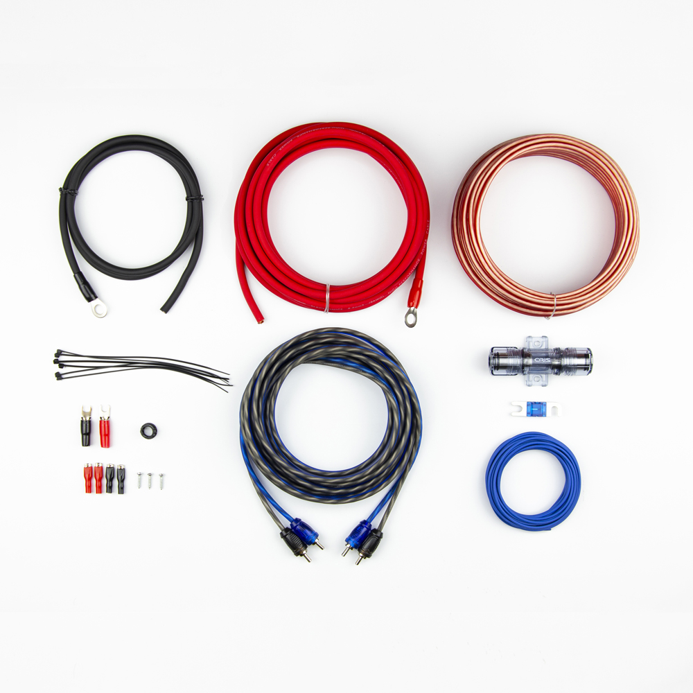 Комплект аксессуаров и проводов для подключения усилителя на два канала. Выполнен из качественных компонентов, обеспечивающих надежность работы. В набор входит плюсовой/минусовой гибкий силовой кабель, межблочный и RCA-кабель, акустический провод из омедненного алюминия. Аксессуары включают 6 кабельных стяжек, три вида клемм - акустическую, кольцевую и типа вилка, а также заглушку и винты.