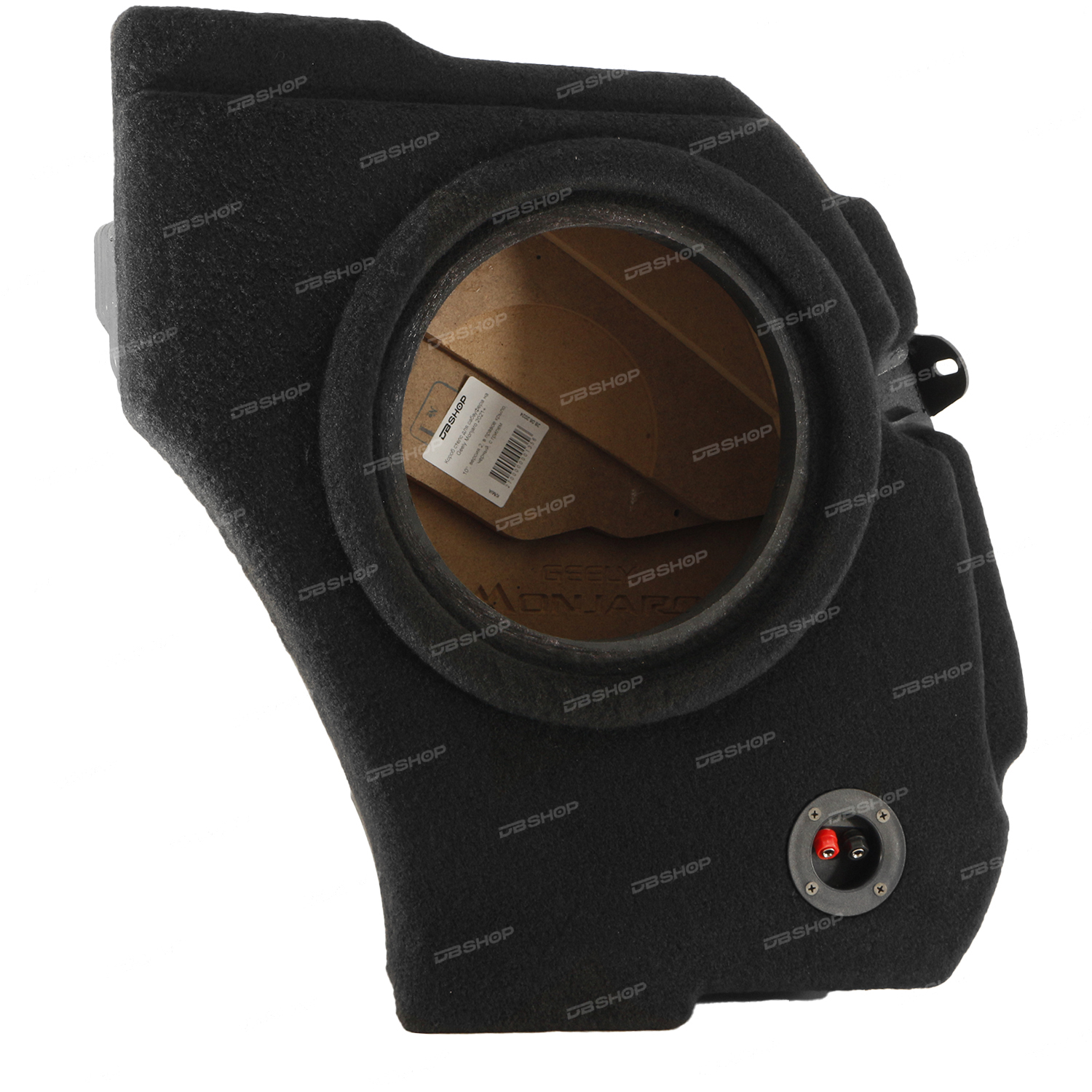 Короб стелс для сабвуфера на Geely Monjaro 2021+ (10", версия 2, в правое крыло, черный, с грилем)
