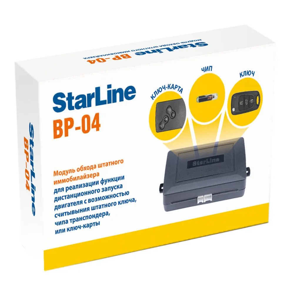 Модуль обхода иммобилайзера StarLine BP-04 — это надёжное решение для организации дистанционного запуска двигателя, позволяющее обойти систему защиты автомобиля без необходимости размещения оригинального ключа в салоне транспортного средства; устройство характеризуется простой установкой и настройкой, совместимостью с большинством современных охранных систем StarLine, компактными габаритами для незаметного монтажа, стабильной работой в температурном диапазоне от -40°C до +85°C при напряжении питания 9-18В, низким энергопотреблением, защитой от несанкционированного доступа и внешних воздействий, возможностью применения на автомобилях с различными типами иммобилайзеров, высоким качеством исполнения и соответствием международным стандартам безопасности, что делает его оптимальным выбором для создания комфортной системы дистанционного управления автомобилем.
